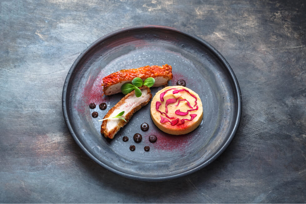Artistically plated premium protein with seasonal garnishes, finished with our chef’s special sauce for a refined dining experience.